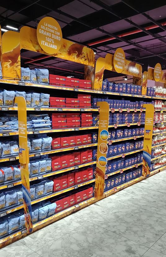 Promozione a scaffale con l’utilizzo di shelf & visibility tools in carta e cartone riciclati e facilmente riciclabili.
