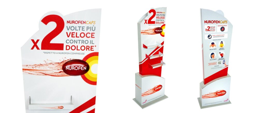 Reckitt aveva la necessità  di un espositore per il lancio del suo nuovo prodotto Nurofen che risaltasse  la nuova formula della pastiglia  e la velocità  di assorbimento;
